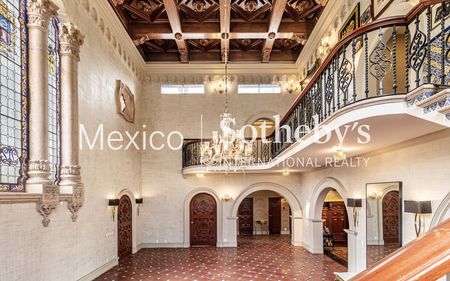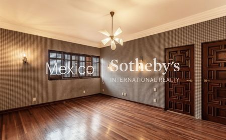 La casa principal alberga 6 recámaras, todas con baño completo. La recámara principal, amplia y elegante, cuenta con acceso a una terraza privada, un generoso vestidor y un baño finamente diseñado. Las áreas sociales incluyen una sala formal, un elegante comedor y un acogedor salón de té o recibidor, todos ellos espacios llenos de carácter y calidez.