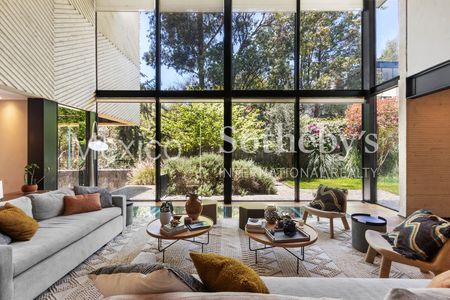 Espectacular casa ubicada en esquina frente a una zona federal de conservación, con vistas abiertas al bosque, gran privacidad y un diseño arquitectónico contemporáneo que privilegia la luz natural y la conexión con la naturaleza.