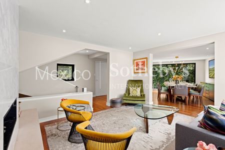 Exquisita y luminosa residencia amueblada con elegancia, rodeada de jardineras terrazas y vistas arboladas en diferentes niveles que invitan al confort y la tranquilidad.