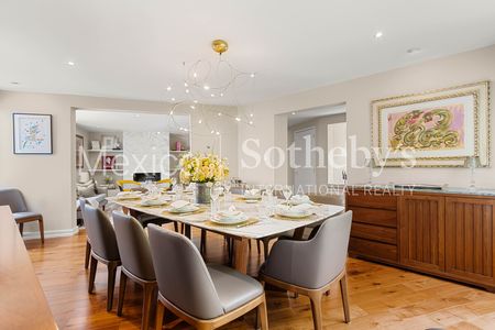 La cocina, diseñada por Studio Panebianco en un estilo francés tradicional, es un verdadero lujo. Equipada con electrodomésticos de alta gama, como el refrigerador Subzero, agua purificada, triturador y lavaplatos, además de contar con hermosas cubiertas de cuarzita Taj Mahal. Un espacio ideal para los amantes de la cocina y de los detalles sofisticados.