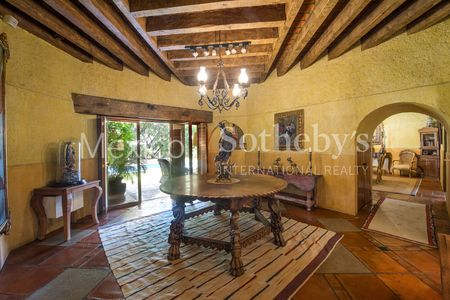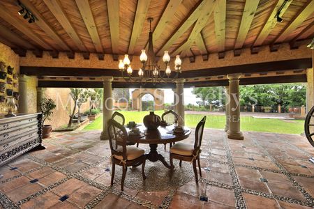 Además, la casa posee una cava de estilo medieval, perfecta para los amantes del vino y el buen gusto. En el exterior, el espacio está diseñado para disfrutar del clima templado de la región. Cuenta con un amplio comedor exterior con asador, ideal para reuniones y celebraciones al aire libre. La alberca y el jacuzzi complementan el jardín, ofreciendo un espacio de relajación y disfrute al aire libre.