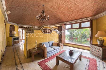 Preciosa casa de estilo colonial mexicano se encuentra en el exclusivo fraccionamiento Limoneros, al norte de Cuernavaca, ofreciendo una espectacular vista arbolada que conecta a sus habitantes con la naturaleza.
