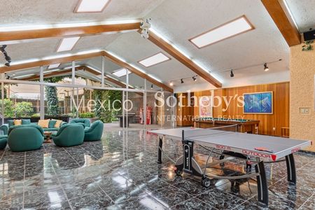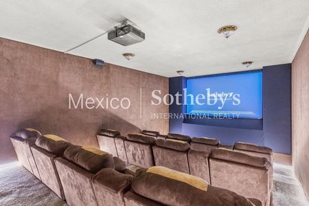 Para tus eventos sociales, la casa cuenta con un espectacular salón de cine con 16 cómodos sillones reclinables, así como un salón de juegos con una terraza integrada que cuenta con un sistema de iluminación y sonido. En este espacio, encontrarás mesas de billar y ping pong, así como mobiliario para eventos de hasta 120 personas.