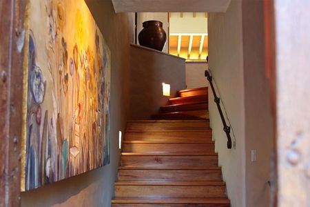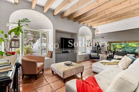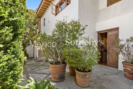 Si buscas entretenimiento, una sala de televisión en la planta baja con vista a un patio interior con una fuente de cantera, es el lugar perfecto para relajarte.
