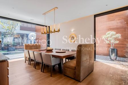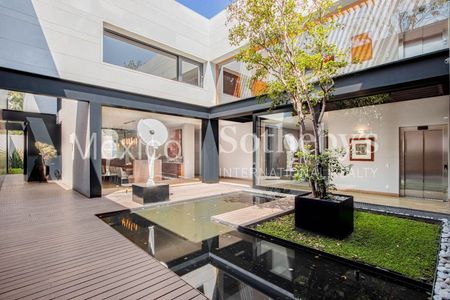 La casa en las Lomas de Chapultepec, construida hace cinco años por el renombrado arquitecto Jaime Guzmán, es impresionante en todos los aspectos. Con acabados de mármol, madera, granito, acero y concreto, esta residencia ofrece un lujo sin igual. Con dos hermosos jardines, cinco recámaras, Family Room, cuarto de juegos, despacho, gimnasio, sala comedor y dos terrazas, la comodidad y el espacio están asegurados. El garage para 15 coches y el elevador desde el garage hasta los cuartos proporcionan una conveniencia excepcional. Además, cuenta con un avanzado sistema de seguridad de alta tecnología, dos cisternas, purificador de agua, planta de luz y entrada al estacionamiento con doble puerta. Los techos de doble altura agregan un toque de grandiosidad, mientras que el enorme cuarto de chóferes y el cuarto de servicio completan esta residencia de ensueño.