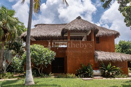 Nos recibe un gran jardín lleno de palmeras, un camino de piedra para entrar a una sala de TV con vista al jardín; además amplias recámaras con baño completo.