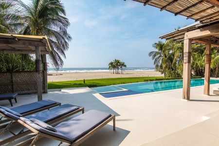 Con 35 metros de frente de frente de playa, alberca infinita, terraza con camastros ideal para disfrutar de las puestas de sol.