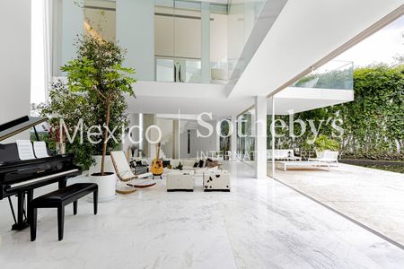 En una esquina única e impactante dentro de una de las privadas del prestigiado fraccionamiento Cumbres de Santa Fé, ésta residencia excepcional es una obra del renombrado arquitecto Miguel Ángel Aragonés. Su firma inconfundible —el minimalismo y el uso protagónico del blanco— se manifiesta en cada rincón de esta casa que celebra el diseño espacial, la luz y la funcionalidad en el estado estético más exigente.