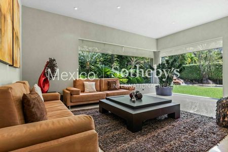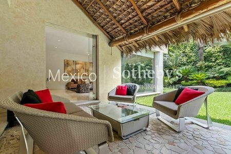 Con doble sala y doble comedor, interior y exterior, la planta baja se vuelve el espacio ideal para recibir invitados en cualquier epoca del ano y disfrutar de su compania en un clima privilegiado, un bellisimo jardin con diversas variedades de palmas y la vista y sonido de la cascada con alberca-jacuzzi.