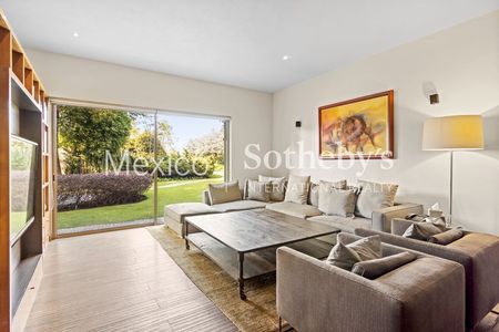 Tres recámaras cada una con baño y walk-in closet. Family en el área privada con pisos de madera y vistas hacia el majestuoso jardín.