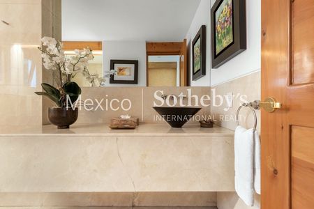 Elementos orgánicos cálidos como la cantera, la madera sólida y el barro se mezclan con el vidrio y el mármol y se integran armoniosamente desde el acceso principal en todas las dimensiones de esta residencia, bañada de luz natural.
