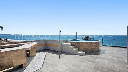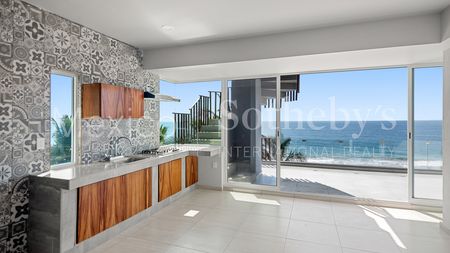 Las áreas comunes del edificio son prácticas y agradables: una alberca perfecta para relajarse mientras disfrutas del paisaje costero, acceso directo a la playa para que puedas caminar por la arena o nadar en el mar en cualquier momento, y nueve espacios de estacionamiento en total, garantizando comodidad para ti y tus visitantes.
