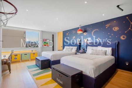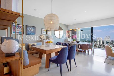 Con una superficie total de 329m2, este espacioso hogar cuenta con 3 amplias recámaras, cada una con baño privado y vestidor, proporcionando la distribución perfecta para el confort y privacidad de cada miembro de la familia. Los 3.5 baños están elegantemente diseñados con acabados de lujo y materiales de primera calidad. La sala y el comedor, con espacios abiertos y luminosos, son ideales para reuniones familiares y sociales, destacándose por sus ventanales de piso a techo que ofrecen una vista espectacular de la ciudad y los alrededores. La moderna cocina está completamente equipada con electrodomésticos de alta gama y acabados en granito. Además, el departamento incluye un cuarto de servicio con baño completo, completamente remodelado y con espacio para 2 camas, proporcionando mayor comodidad y funcionalidad, así como una amplia y bien ventilada área de lavado equipada para todas tus necesidades.