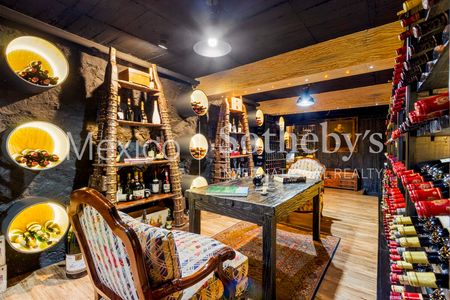 ● una planta terraza con una amplísima sala de cine con 4 filas de butacas, sonido ambiental Bose, con su cava de vinos en control de temperatura y un área de juego.