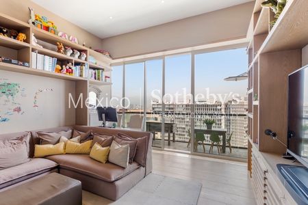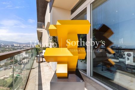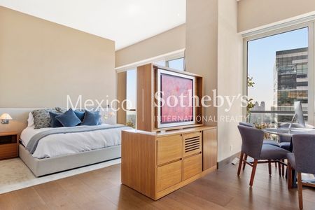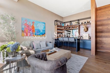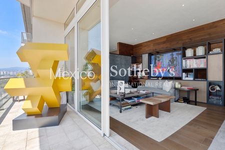 Totalmente amueblado, con alturas de 4 m de techos, con grandes ventanales que permiten una iluminación natural. Decorado con un gusto exquisito, listo para ser habitado. Este departamento cuenta con una terraza, un bar junto al family room y un cuarto de juegos con ventilación natural, el cual puede ser modificado para estudio si es necesario.